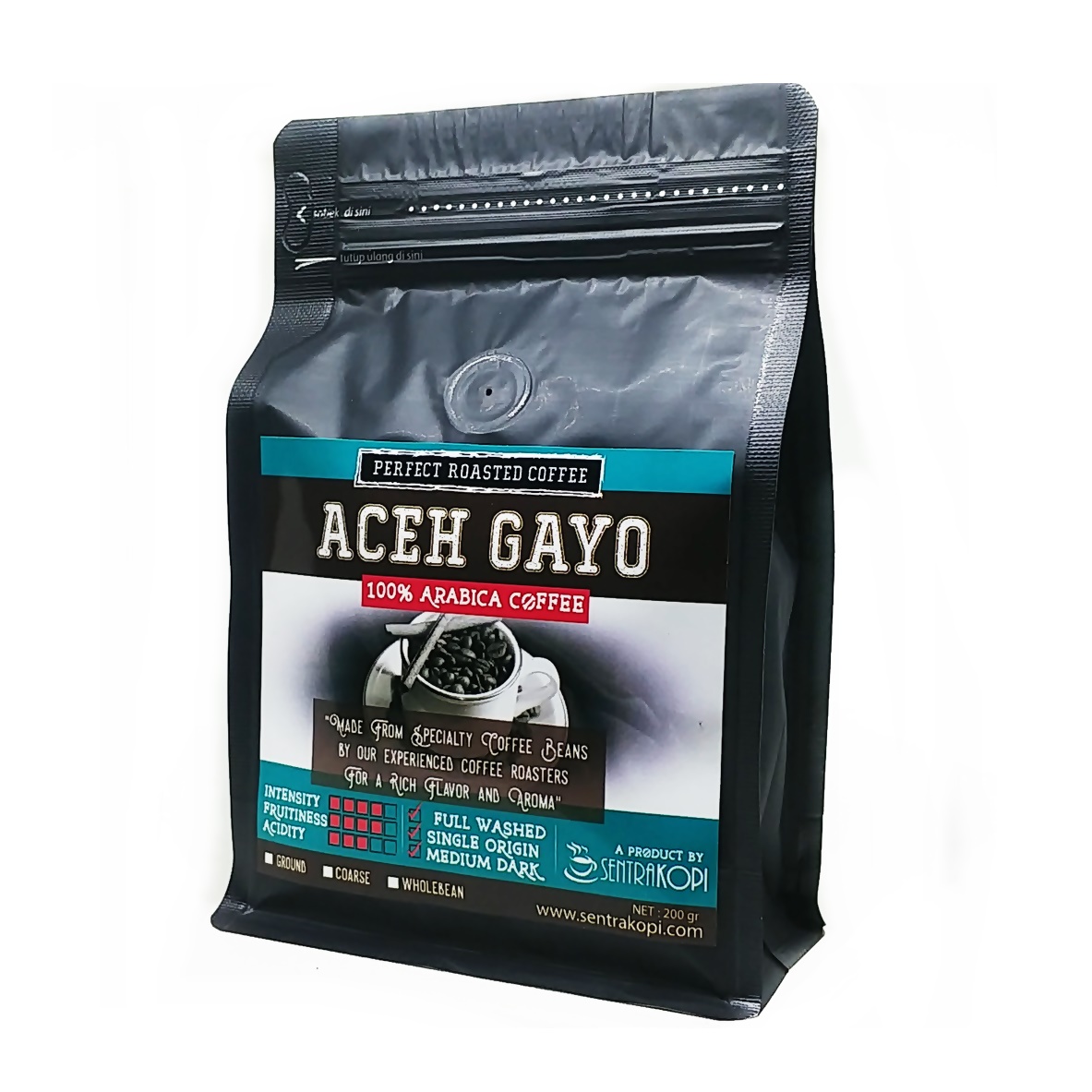 Sentra Kopi menjual berbagai produk kopi 100% asli berasal dari Arabica Aceh Gayo (single origin). Belanja secara online maka Anda akan mendapatkan produk kami yang paling fresh! yaitu baru saja diproduksi tidak lebih dari 7 hari.